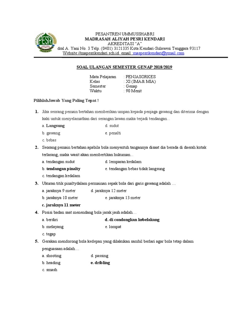 Berikut adalah contoh soal-soal PJOK kelas 11 semester 1 K13 yang dikelompokkan berdasarkan materi pelajaran: